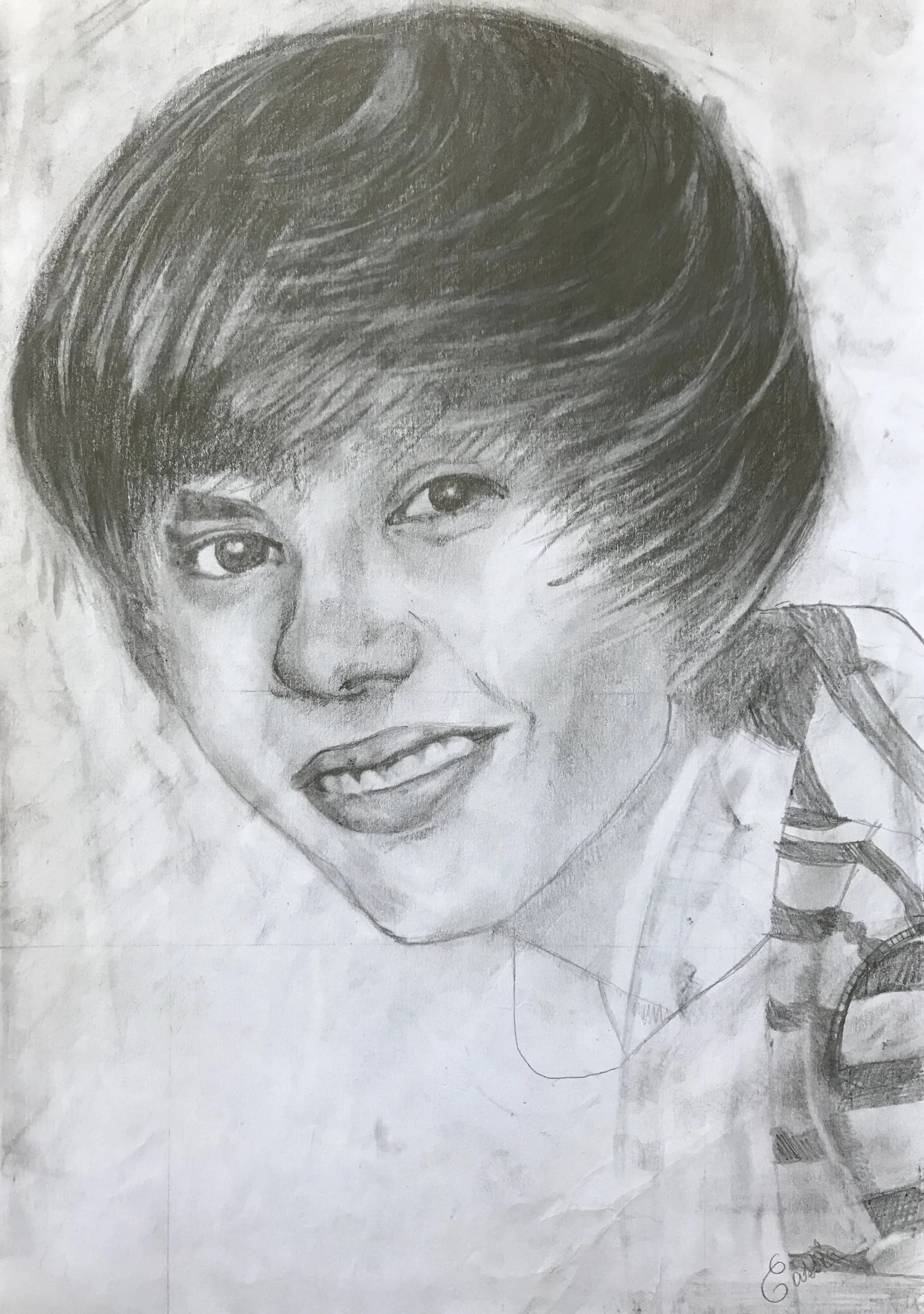 J'ai enchainé avec des photos de mes stars du moment, Kristen Stewart (ou plutôt Bella Swan) et Justin Bieber. Ce n'est pas très original j'avoue mais c'est une bonne manière de commencer 🥰. Quand on est "fan" on ressent beaucoup d'émotions positives donc c'est top de chercher à les figer dans le temps ! Et puis on ne voudrait pas les offenser en faisant des dessins trop moche alors on s'applique 👍